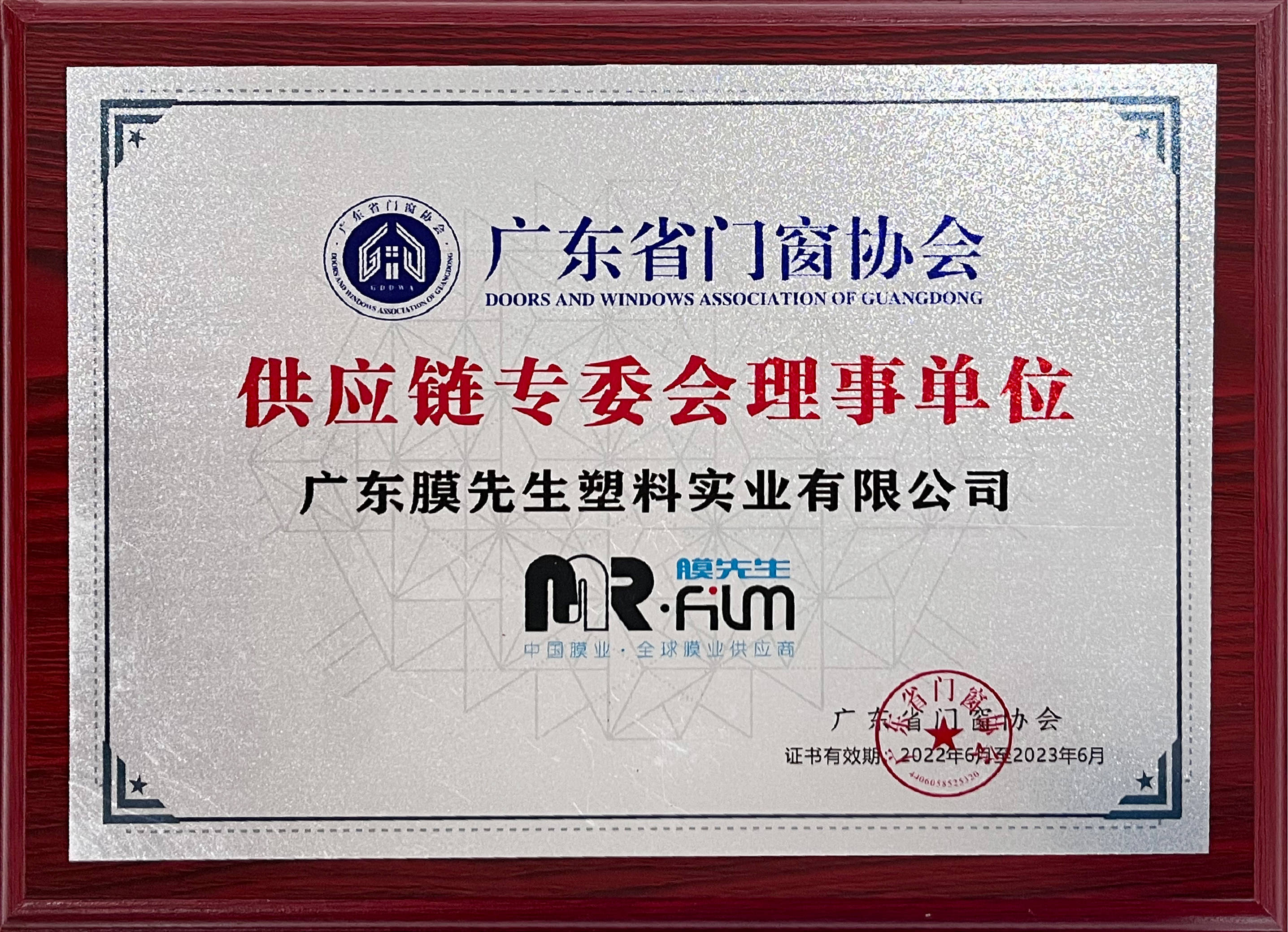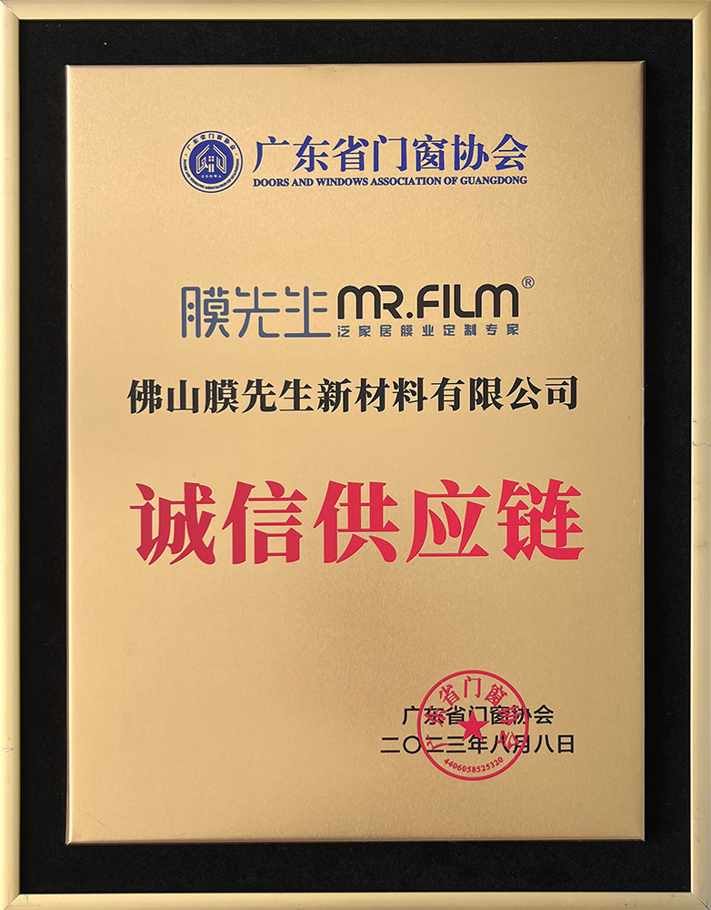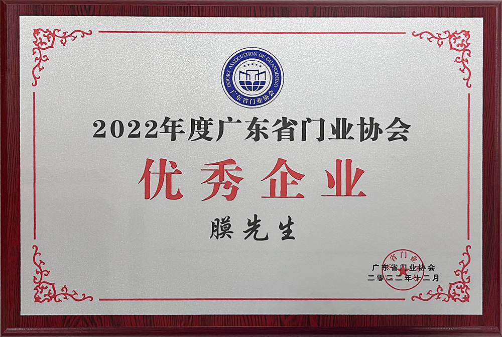 膜先生被評(píng)為廣東省門(mén)業(yè)協(xié)會(huì)優(yōu)秀企業(yè),榮膺廣東省門(mén)窗協(xié)會(huì)供應(yīng)鏈專委會(huì)理事單位。