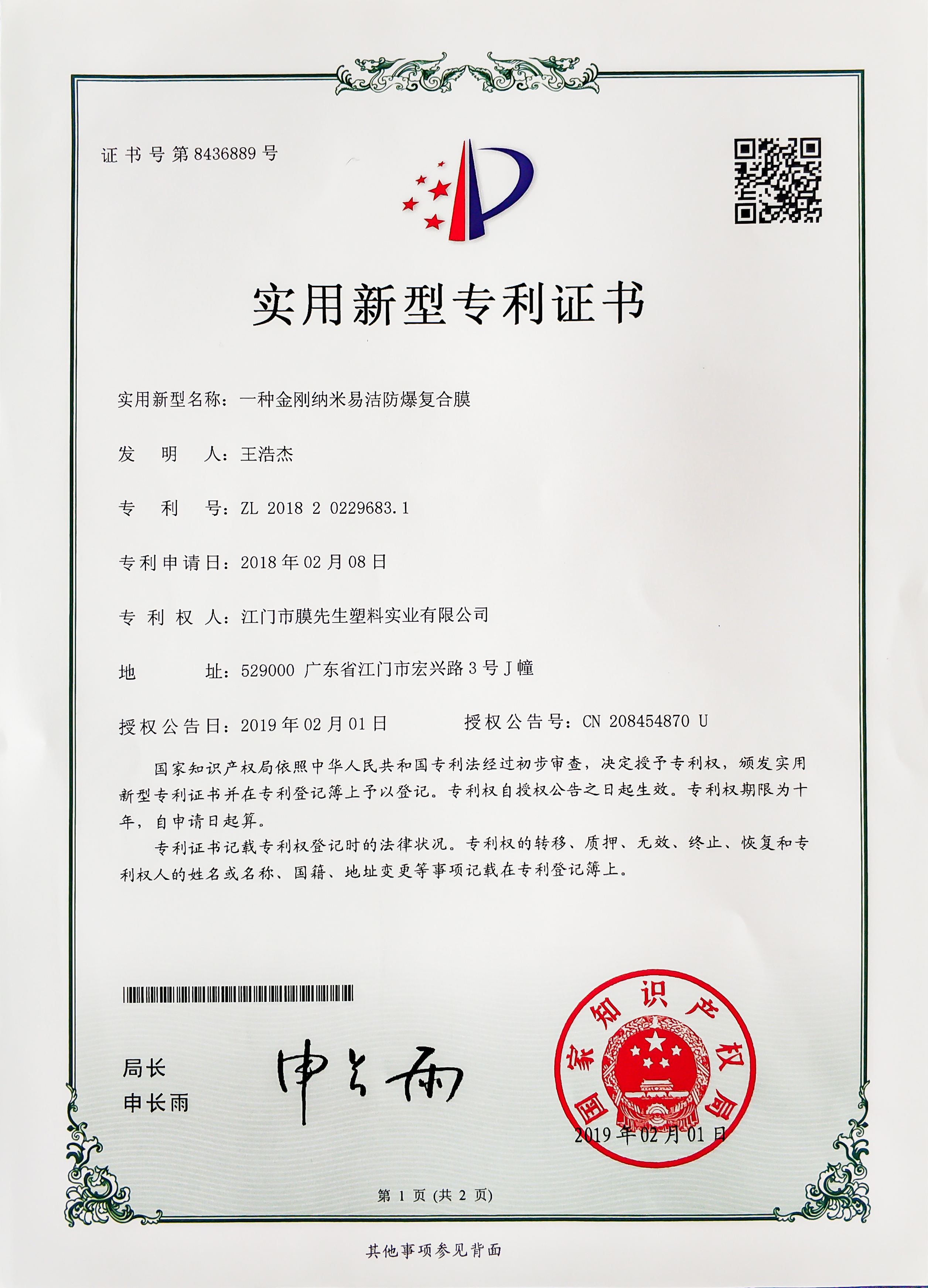 澳洲公司成立(MR.FILM PTY LTD) 膜先生榮獲“國(guó)家高新技術(shù)企業(yè)”殊榮,得到國(guó)家級(jí)權(quán)威認(rèn)證,業(yè)界高度贊譽(yù)。